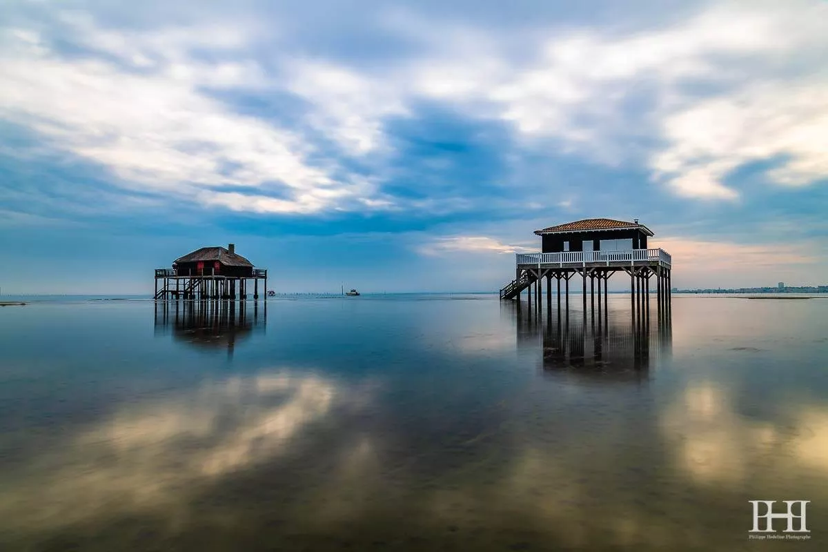 Le bateau selon le sens de parcours longe au plus prés selon la marée: les cabanes sur pilotis de l’île aux oiseaux, les parcs à huitres, les villages de pêcheurs de la presqu’île du Cap Ferret,traversée de l’entrée du bassin, découverte du banc d’Arguin face à l’immense dune du Pilat, en navigant dans l’ancienne passe sud.